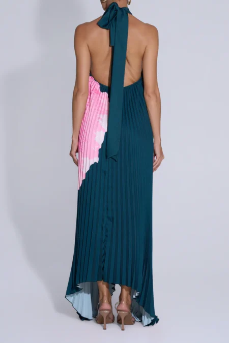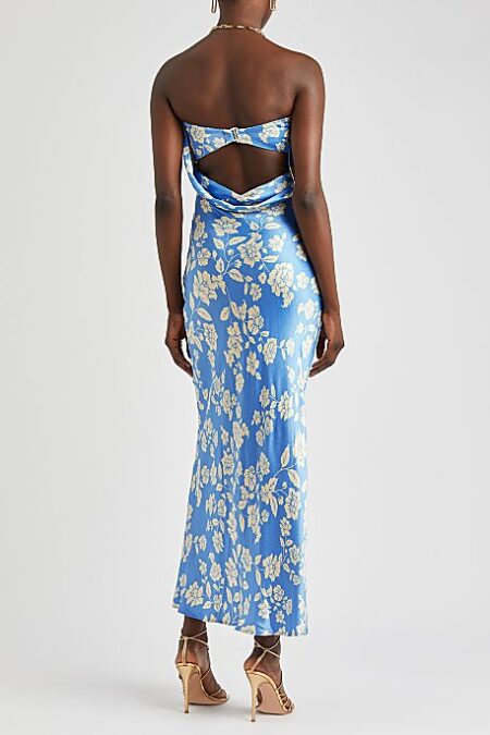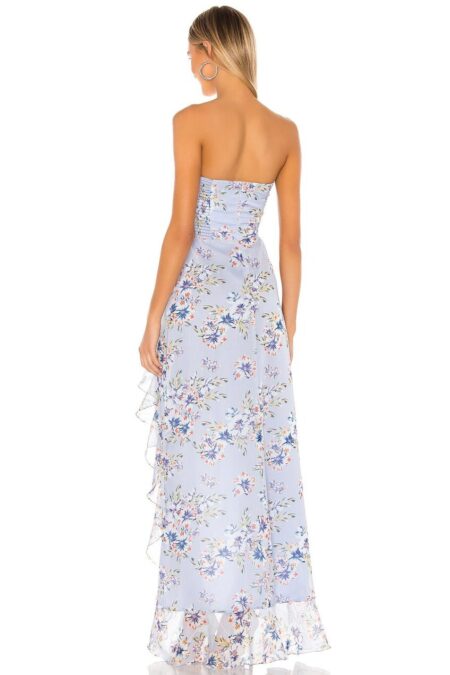 Buy Now: €80.00Modeled in size S. Model Measurements: Height 5'9" / 175 cm, Waist 24, Bust 32, Hips 34 100% poly Partially lined Hidden back zipper closure with smocked back panel Non-slip silicone grip lining Boned sides Lightweight crepe de chine fabric with ruffle trim Neckline to shortest hem measures approx 22" […]